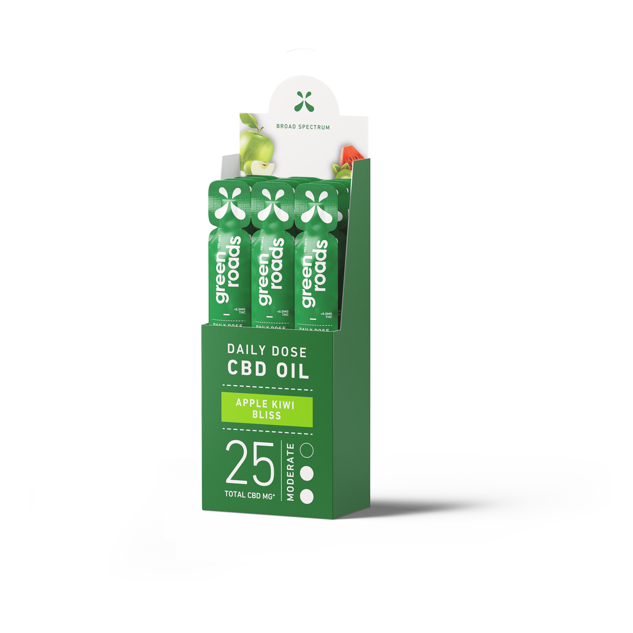 Green Roads Apple Kiwi Flavor Broad Spectrum CBD Oil Daily Dose – 12pk – 25mg